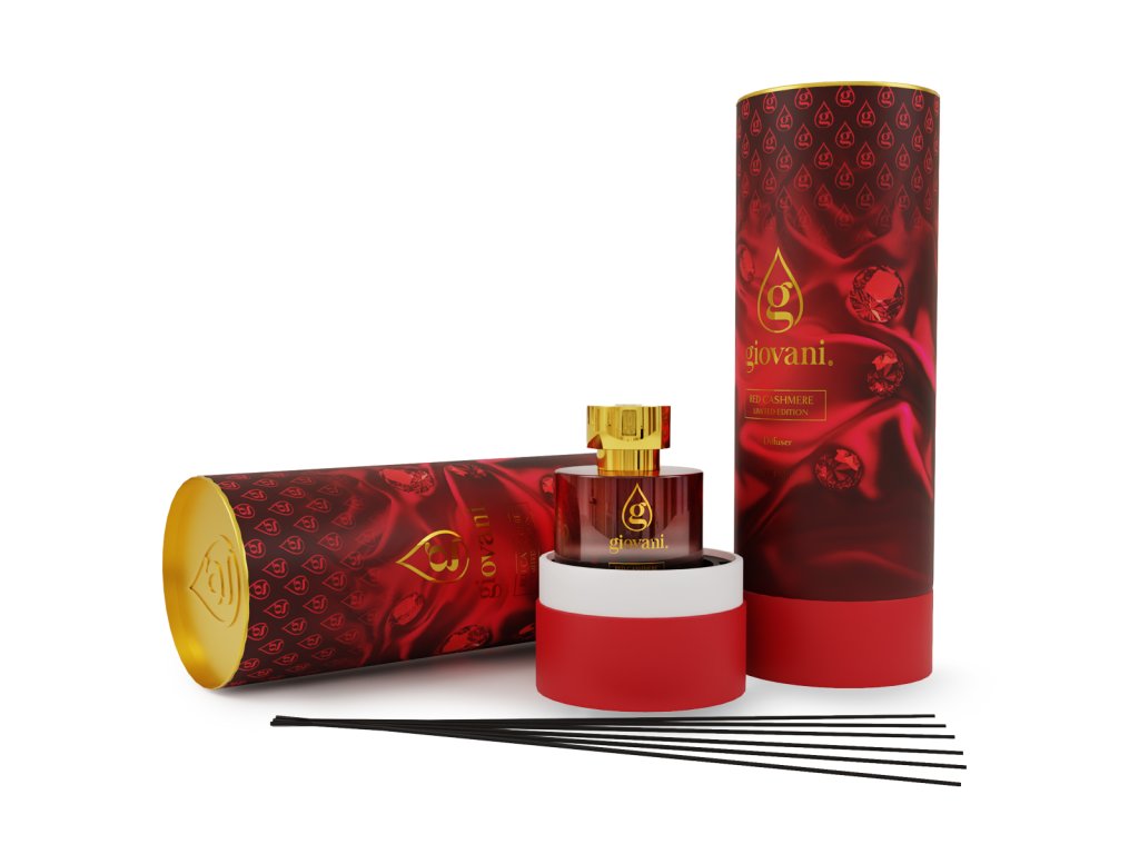 Чувственост, дълбочина и топла елегантност в изискана ароматна композиция. Арома дифузерът с пръчици Giovani® RED CASHMERE се отваря със сладки нотки на захарен памук, череша, ягода и малина. В сърцето се разгръща нежна комбинация от виолетка, момина сълза и жасмин, деликатно допълнена от анасон, който придава пикантен нюанс.