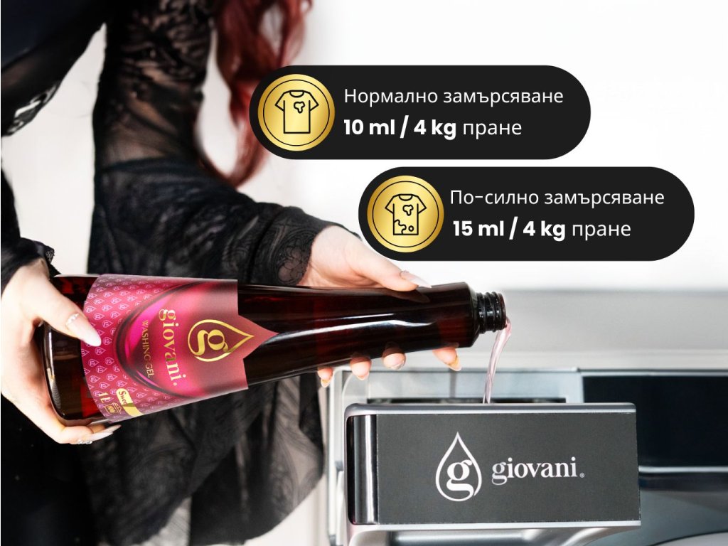 Борите се с мазни петна? В този случай препоръчваме да добавите специален препарат срещу мазнини към перилния гел Giovani.
